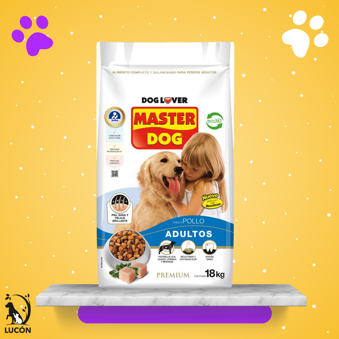 Alimento completo y balanceado recomendado para tu Master Dog Adulto Razas Medianas y Grandes, desde los 18 meses hasta los 7 años. Contiene Omega 3 para una piel sana y pelaje brillante. Además contiene proteínas de alta calidad, vitaminas y minerales que tu Master Dog necesita para mantenerse fuerte y saludable.